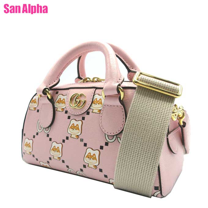 【10%OFF 1/6 9:59迄】グッチ バッグ ハンドバッグ GUCCI レザー GGマーモント アニマル プリント アンジェラ・グエン Pikarar アートワーク コラボ KAWAII 2WAY 斜め掛け ミニボストン 724606 (ピンク系マルチ) ブティックライン レディース 送料無料