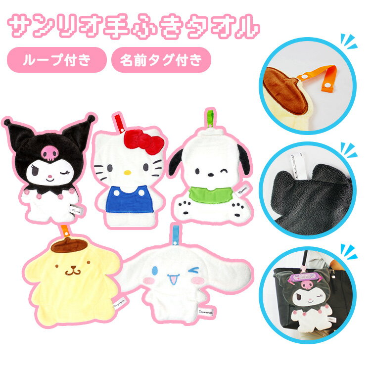 【レビュープレゼント付き新商品】サンリオ公式ライセンス認証 キャラふきタオル ループ付きお手拭きタオル シナモン ポムポム プリン キティ クロミ ポチャッコ Sanrio kawaii キャラクター マイメロ ハンギョドン タキシードサム ペックル ばつ丸 推し 幼稚園 保育園 子