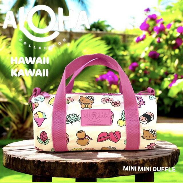 【ALOHA COLLECTION】ミニミニダッフル バッグ ハローキティ アロハ Mini Mini Duffle 2way コラボレーション 日焼けキティ 撥水 splashproof 防滴 レイ プルメリア シェーブアイス ulu spam ビーチサンダル HAWAII KAWAII ピンク プール ビーチ ハワイ 送料無料 mu