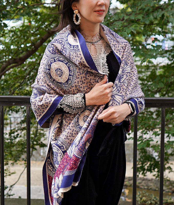 「cawaii french」モロッカンフラワーの大判ストール【ベージュ】